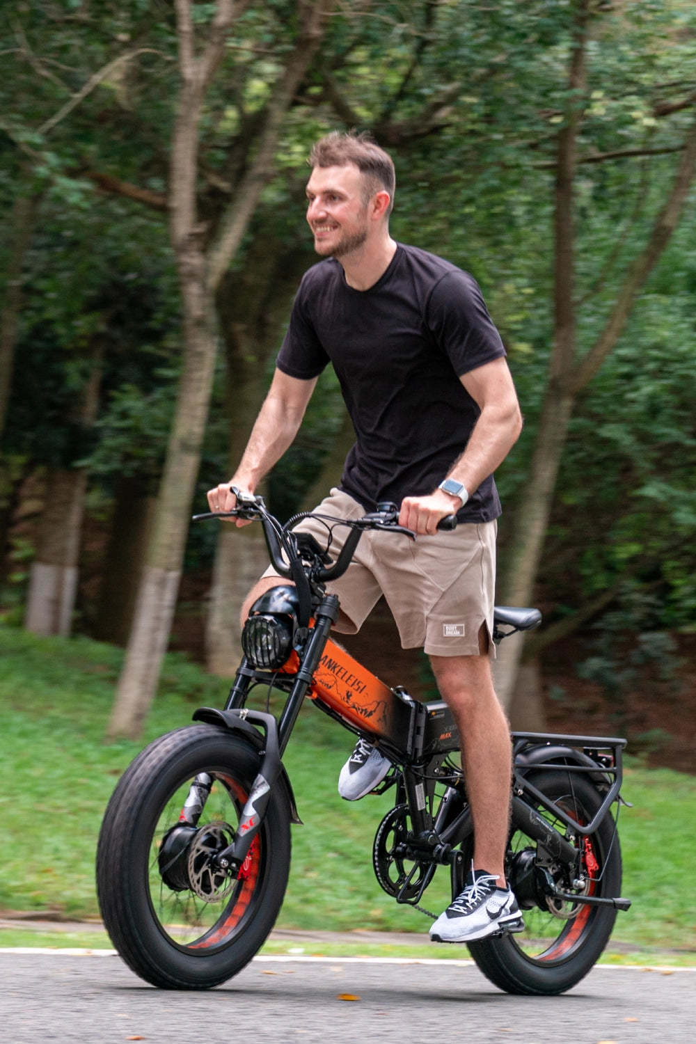 Lankeleisi X3000Max this folding e-bike with 2000W dual motors and full suspension can easily handle rough terrain.